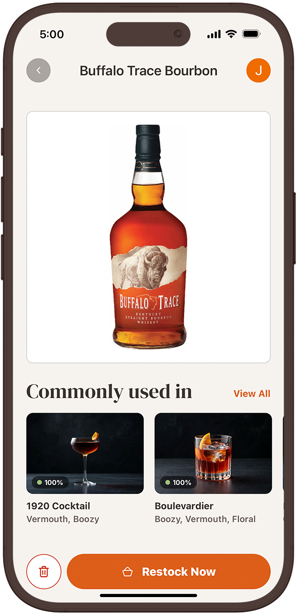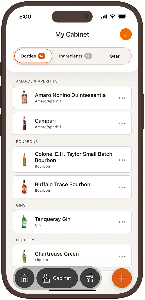 Add bitters, syrups, juices, and fresh produce to your pantry. Topa! builds a complete picture of what you're actually working with — not just the bottles on your shelf.