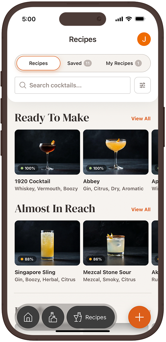 You have more to work with than you think. Topa! finds the cocktails hiding in plain sight — and helps you build toward the ones you're missing.